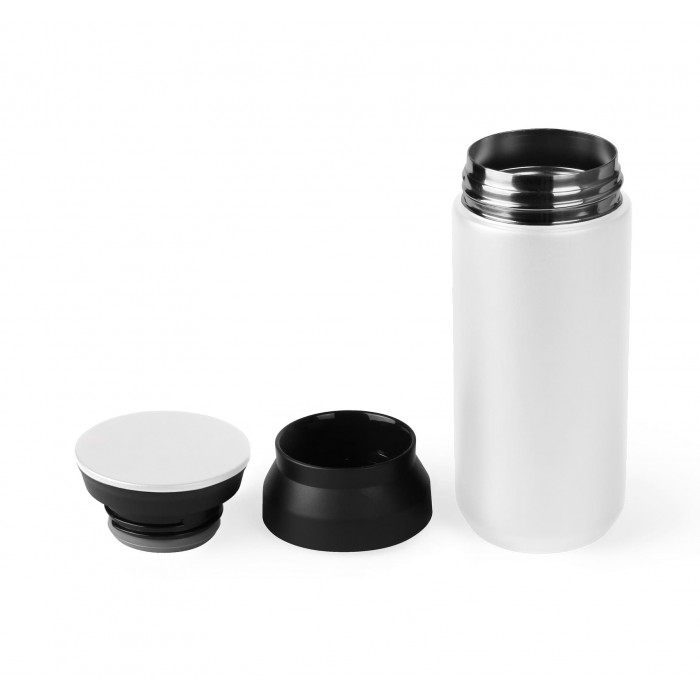 Вакуумна термочашка з нержавіючої сталі, Покриття - матова емаль. Підтримує температуру протягом 8-ми годин. Герметична пластикова кришка, має вбудований фільтр для чайних листочків, фруктів чи льоду, а також легко розбирається для миття. Об'єм 350 мл., Висота 17 см., діаметр 6,7 см. Індивідуальна картонна подарункова коробка. Розмір індивідуальної коробки: 17,8 х 7,4 х 7,4 см. Метод нанесення гравіювання, уф-друк, тамподрук на верхній частині кришки. Діаметр місця нанесення на кришці 6,7 см.